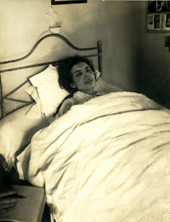 Esta deve ser do mesmo dia. O cabelo está bastante desalinhado como na anterior, a coberta da cama parece a mesma, diversos pormenores nas almofadas e na parede apontam para a mesma ocasião.